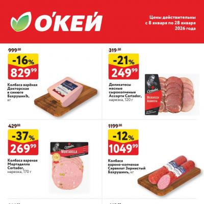 Мясная продукция со скидкой в Окей с 8 января - 28 января 2026